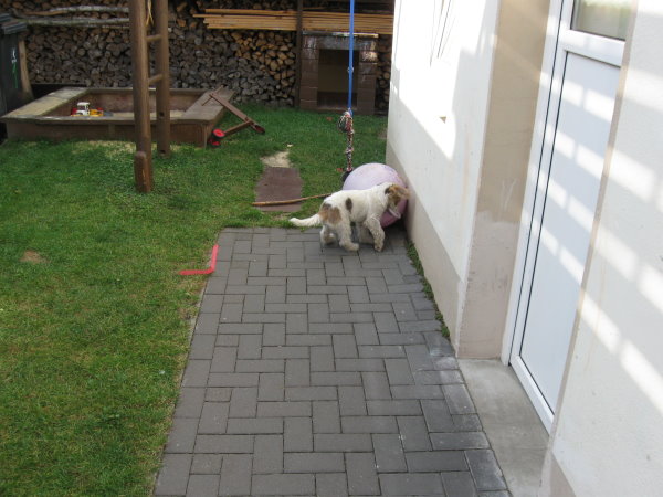 Wenn ich den Ball werfe, holt er ihn wieder, das schaut zum schießen aus, er rennt damit richtig und weils so schön ist, hab ich mit dem kleinen Bällchen in unserem Hofgang die Lampenkuppel abgeschmissen und somit zerdeppert :oops: :geek: