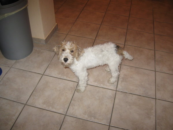 Der Vater meines Nachbarn hatte auch immer Foxterrier. Ich hab dann meinen Nachbarn gebeten, seinen Vater zu fragen, wo er sie hat trimmen lassen. Er sagte mir dann, dass sein Vater das selber macht, mit einer Schermaschine :roll: Heute hab ich eine Foxdame getroffen, der Mensch am anderen Ende der Leine sagte mir dann, dass er es auch selber macht, aber eben schert. Der Fox war fast durchgehend grau, die FLecken total hell. Sowas möchte ich für Rudi nicht.