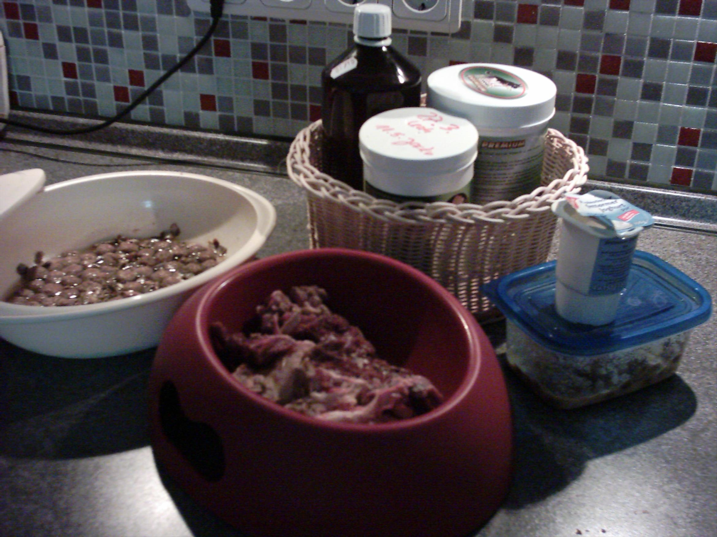 Die Karotten auf den Fotos waren ungekocht. Die Karotten jetzt gebe ich ihr momentan gekocht, weil ich mich langsam und Stück für Stück herantaste, was mit der Allergie geht und was nicht. Auf das, was ich da oben fabriziert habe - also Lamm, gekochtes Schwein, Kartoffeln und ungekochte Möhren -, hat sie reagiert. Daher war der nächste Schritt: keine Kartoffeln und Möhren gekocht. Die nächsten Mahlzeiten gibt es dann wieder mit ungekochten Möhren und ich bin gespannt, ob sie da eine Reaktion zeigt.