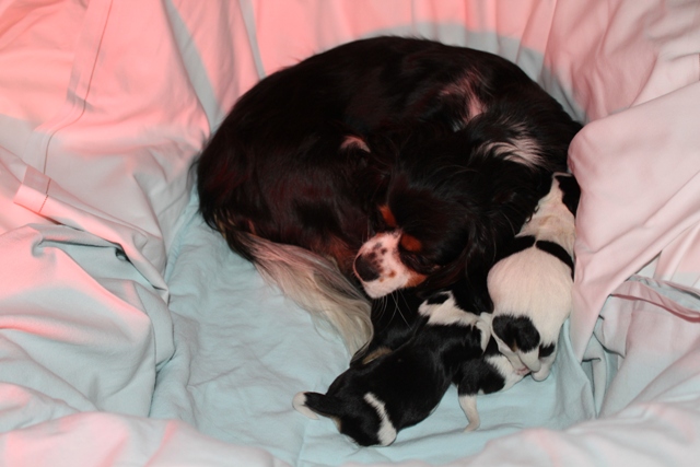 Re: Trächtig?Hallo zusammen =) in der Nacht vom vergangenem Donnerstag auf Freitag zwischen 0.10 und 3.30 Uhr hat meine Süße 4 gesunde Welpen problemlos zur Welt gebracht =) Nun gibt sie die perfekte Hundemutter