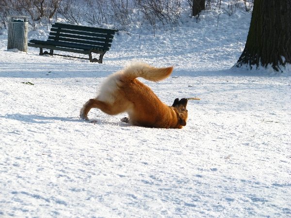 Genau, Toni hat nämlich so einen Stummelschwanz und in meinen Augen sieht das ganz schrecklich aus. Als hätte der Hund einen schlimmen Unfall erlitten. Der Kleine hat schon Charme, aber meine Rasse ist es nicht. Dieses besondere Exemplar ist vor allem schwanzgesteuert und hat von mir recht unsanft erfahren müssen, was ich von seiner Rammelei halte. Seitdem verstehen wir uns.