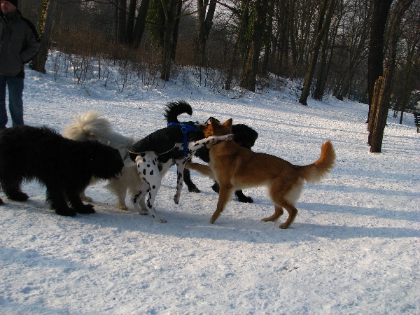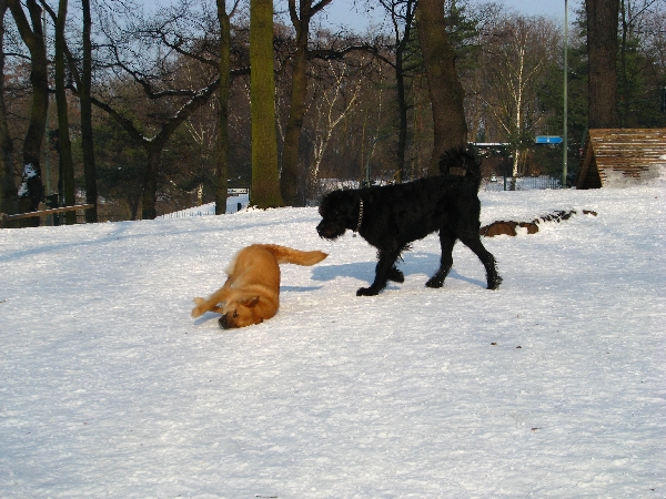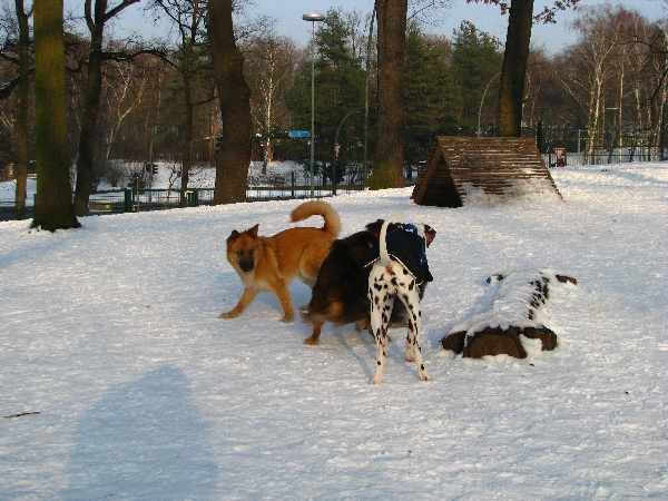 In dieser Woche war ich mit Kiara und meinem Gassihund Toni auf einem Hundespielplatz bei uns in der Nähe. Da Kiara zur Zeit leider nicht einfach ist mit kleinen oder unsicheren Hunden, habe ich mich umso mehr gefreut, dass es mit ca. 10 Hunden - vom Mops bis zum Riesenschnauzer - gut geklappt hat und alle friedlich miteinander getobt haben.