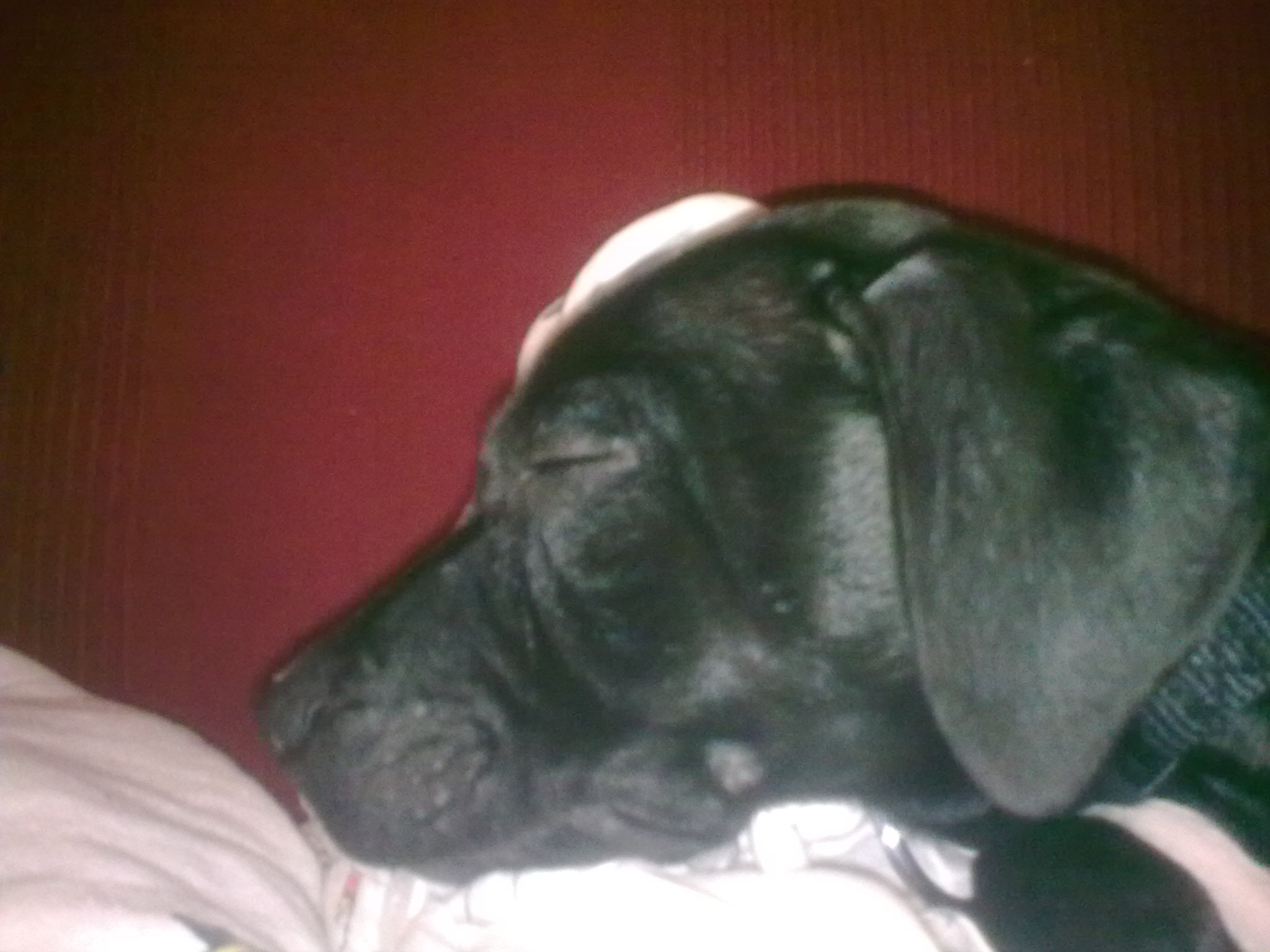 Ich kann damit leben,dass er ein Mix aus Listenhund ist. Es ist nicht schlimm und ändert jetzt auch nichts mehr. Für mich ist er offizell ein Labbi-Boxer. Und ich finde auch,dass die Schnauze nicht nach dem Staff kommt.hab nochmal ein paar Bilder davon gemacht.