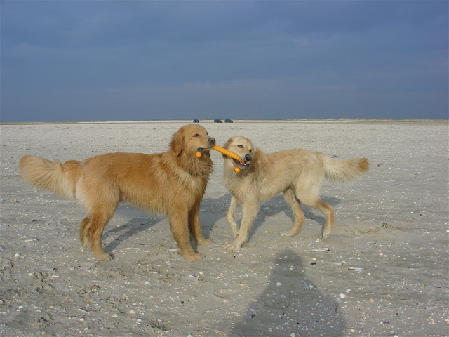Zwei Hunde - ein Stock. Und Paul gewinnt doch immer wieder.