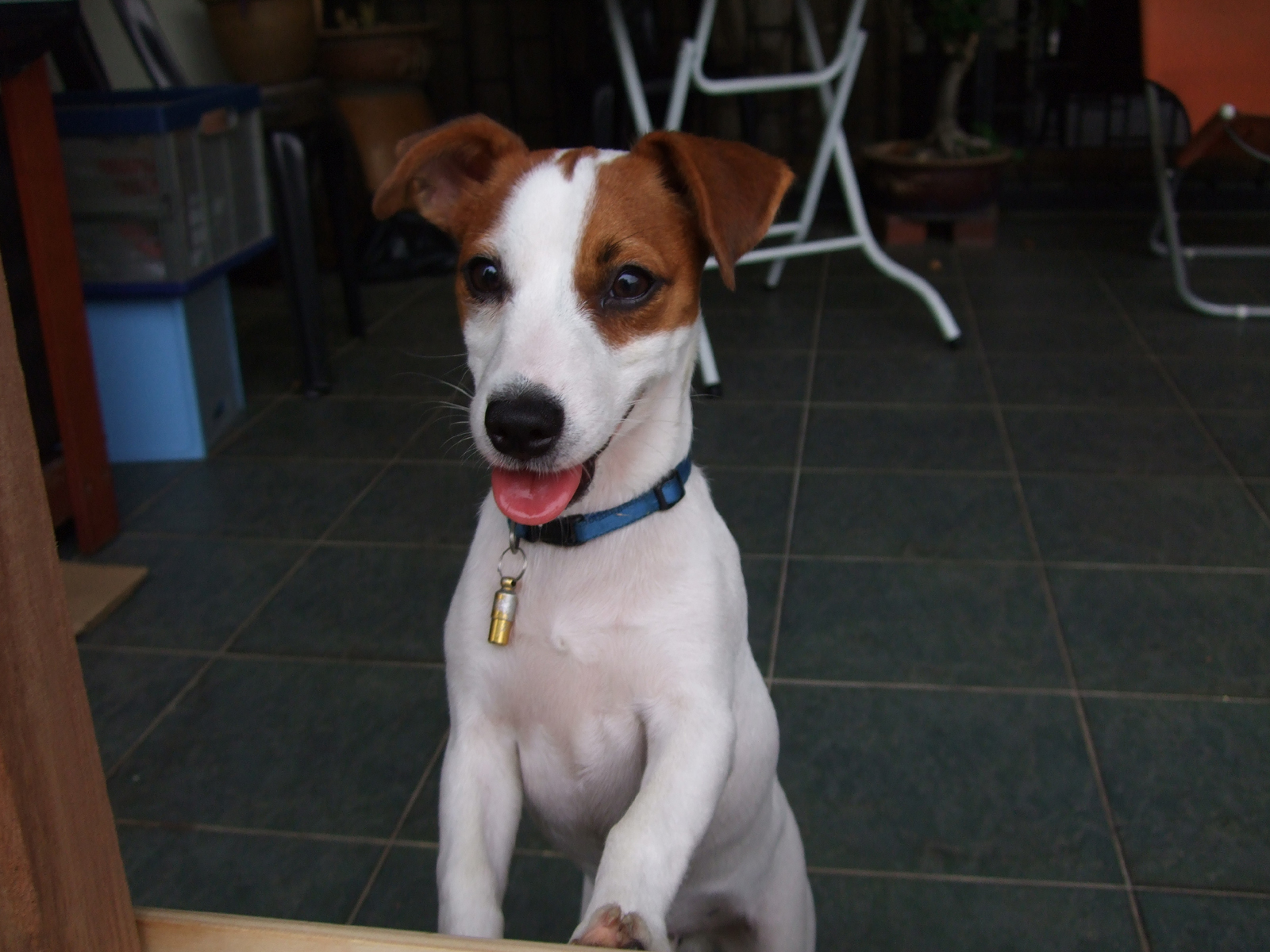 Toby ist 6 Monateda hatte er noch so einen schoenen weissen Fleck auf der Nase, der leider mit 4 1/2 Monaten dann verschwunden war... nu muss ich aber erst mal Gassi gehen... ist grad so angenehm kuehl draussen, nachher zeig ich euch dann noch wie ich fliegen kann *angeb* lg Toby (der Frauchen vom PC verjagt hat)