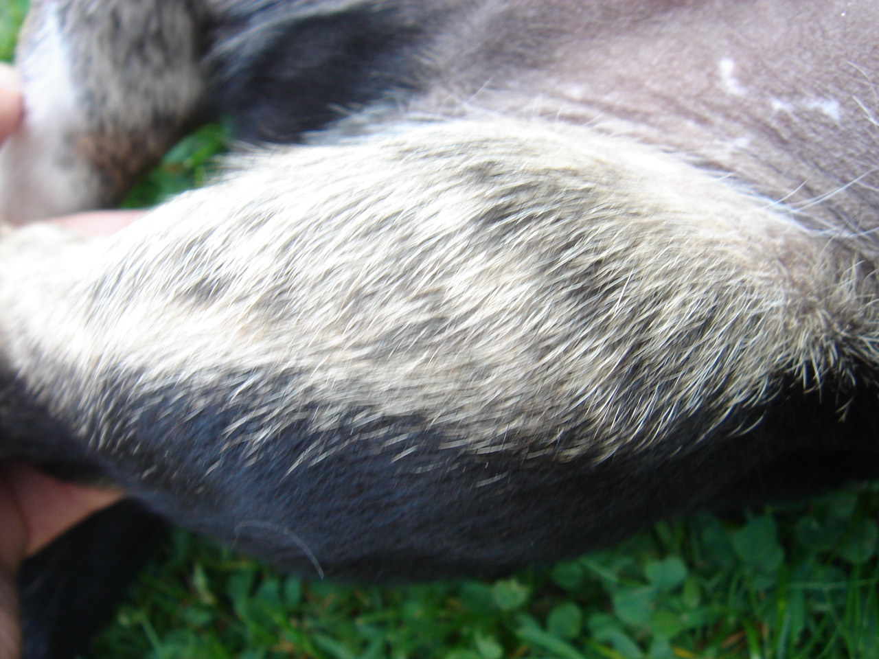 Sein Fell verfärbt sich übrigens langsam von tricolor, hauptsächlich schwarz, immer mehr in sandfarben.