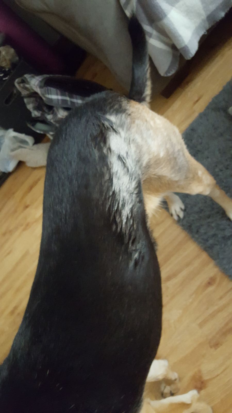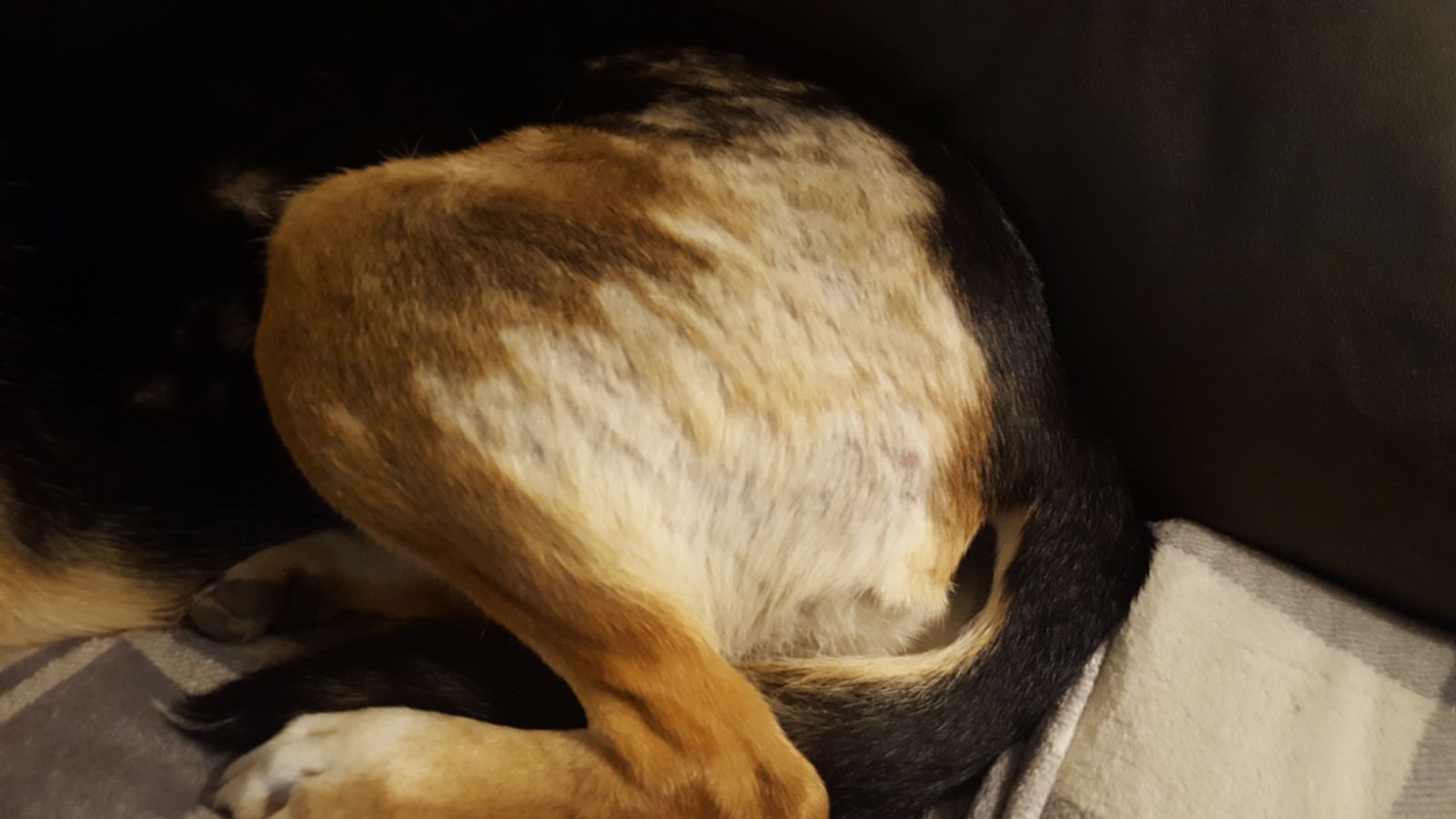 seit knapp einem Jahr knabbert sie sich ihr Fell am Hintern und den Hinterbeinen weg (meist aber nicht bis auf die Haut und rechts und links ist es fast symmetrisch). Phasenweise wird auch der seitliche Bauch und die Vorderbeine abgeknabbert oder stark abgeleckt. Alles begann kurz nach der Trennung zu meinem damaligen Freund. Vor der Tür stand ein Umzug ins Ausland und somit auch ein Futterwechsel (von VetConcept zu Hills). Ich vermied jedoch jegliche Hühnchen- und Getreidebeimischungen bei der Futterwahl.