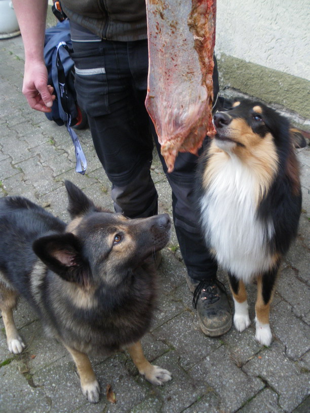 Rindermilz. Die Hunde froin sich.