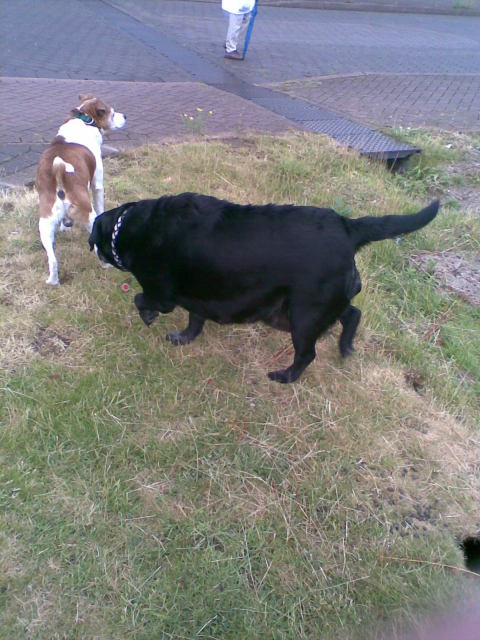 hm, wir haben hier auch ne total verfettete Labbi-Hündin in der Nachbarschaft... die Arme kommt auch kaum raus, nur manchmal geht Herrchen mit ihr ne kleine Runde. Dabei ist die soo lieb, die dicke Paula. Ich könnt mich immer wegpacken wenn die ankommt, die robbt mehr und schmeißt sich mir vor die Füße. Herrchen hat sich von mir schon ein paar blöde Sprüche anhören müssen