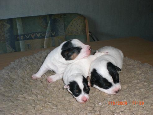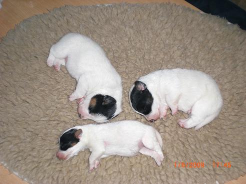 die kleine ist die in der mitte ;) . die beiden rüden haben heute ihre augen leicht geöffnet. zu süss