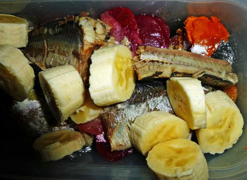 Deshalb werden meine Mehlbrei-mit Brennnesseln, Löwenzahn, Obst, Gemüse und-Metzgereiresten-Fresser auch so schön gesund alt. Bei uns wird gut gemischt. Mache ich für meine menschliche Familie doch ganz ähnlich.