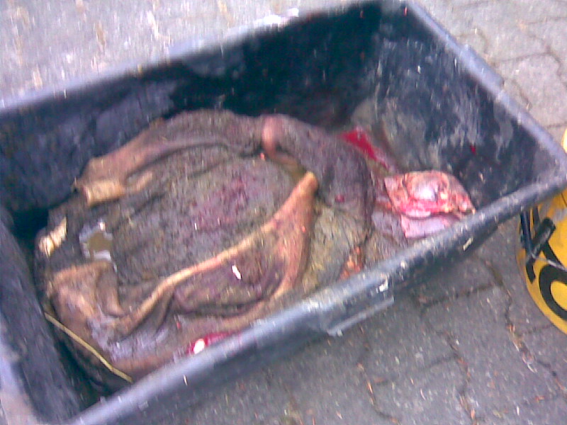 Das sind knapp 15 Kilo grüner Pansen, ungewaschen und 15-20 Kilo Blättermagen gefüllt.
