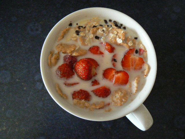 Spötter behaupten Akira´s und mein Frühstück würden sich sehr ähneln ! Finde ich gar nicht .Bei meinem Frühstück hat das Schälchen doch´n Henkel .