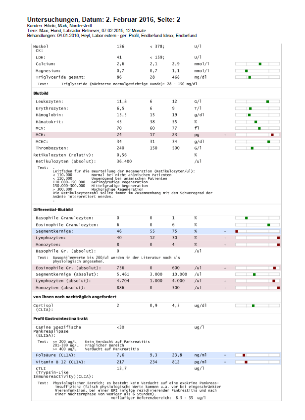 Ich habe soeben Laborergebnisse meines Labradores bekommen, jedoch sind das für mich nicht verständliche Buchstaben