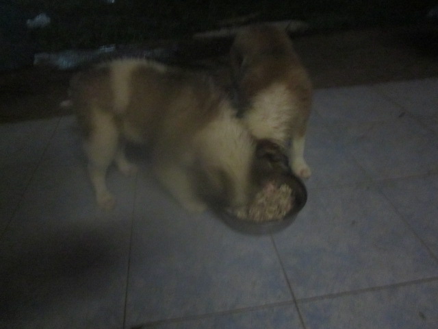 Und genau so ist es auch bei den alt Hunden, die Fressen zwar in ihren Zwingern, aber die Futter- Ständer sind so Angebracht, das sie sich beim Fressen direkt in die Augen gucken können, aber Sie könnten wenn sie wollten, auch zum Nachbar in den Zwinger, denn die Türen sind bei mir nicht Verschlossen, die sind zwar zu aber man muss sich das bei mir so Vorstellen die Türen sind wie in einem Saloon, also mit flügel Scharniere die können da Rein und Raus wie Sie wollen was sie auch immer machen aber beim Futter da bleibt dann jeder in seinem Zwinger, aber das habe ich ihnen auch nicht so Antrainiert, die machen das dann im Alter alles von selber und das weil Sie eben auch Satt sind und wissen das beim Nachbar ja auch nur das gleiche in der Schüssel ist.