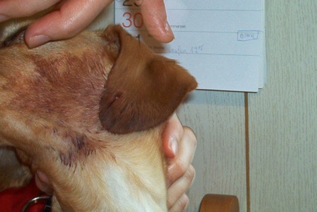Der 9 Monate alte Schäferhund Mix (ein Riese!) ist ab nächster Woche unser direkter Nachbar. Er ist der Hund einer guten Freundin und sie kennen sich schon und haben sich bisher auch immer ganz gut Verstanden. Ich war nicht dabei, aber mir wurde erzählt, dass es in der noch nicht bewohnten Wohnung passiert ist. Aber der große Hund hatte Snoopy wohl richtig in der Mangel und hat ihn immer wieder in Nacken gebissen. Snoopy konnte sich überhaupt nicht wehren
