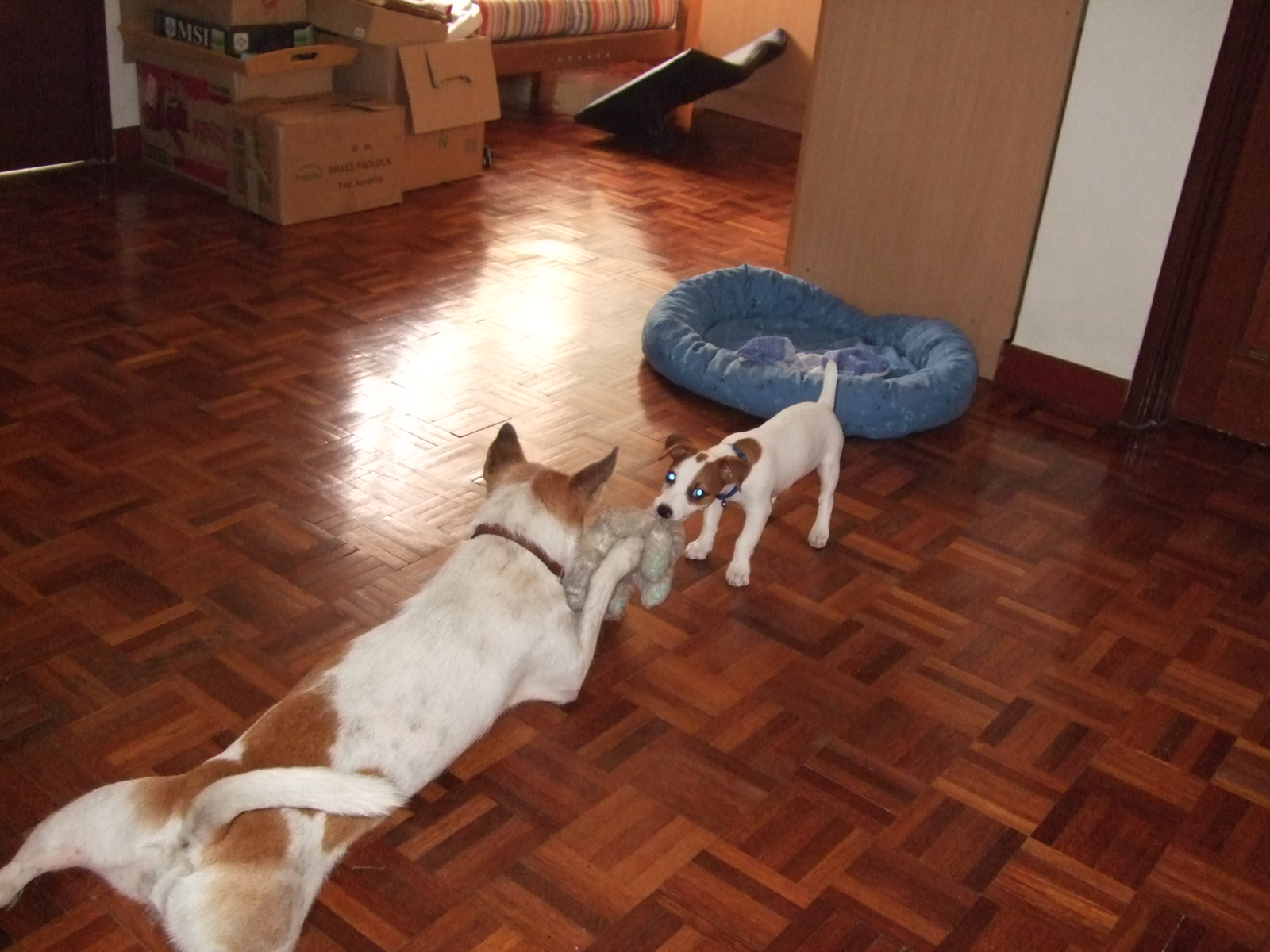 Das hat sich geaendert seit dem wir Toby haben und er ihr gezeigt hat, das man bei Regen eben auch mal unter dem Ueberdachten Teil des Hofes seinen Druck los werden kann