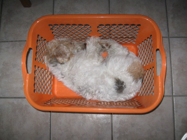 Re: Hund schläft im WäschekorbSolange der Korb nicht voll mit weißer, frisch gewaschender Wäsche ist, find ich das auch okay