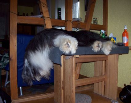 nachdem mein Frauchen ja in letzter Zeit nicht viel Zeit hatte, da ich operiert werden musste, werde ich jetzt mal was schreiben und zeigen. Es geht mir schon wieder richtig prächtig, ich hatte übrigens ein "Knopfgeschwulst" hat mein Doc gesagt, das dumme Teil wurde grösser und hat sich zu allem Überfluss auch noch entzündet :evil:, aber jetzt ist es weg und mir geht es suuuper. Allerdings muss ich auf viiiel zu kleinen Sesseln liegen, stellt Euch das mal vor!
