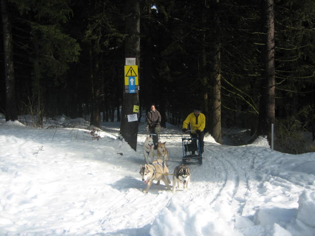 Ich habs diesen Winter trotz der schönen Schneeverhältnisse kein einziges Mal geschafft, mit meinen Hunden zu fahren. Das liegt daran, dass die beiden jungen Hündinnen seit Mitte Januar gedeckt sind und sich zur Sicherheit für die Fruchtansätze nicht so anstrengen sollen. Drago wäre mit seinen 3 Jahren zwar prädesteniert, kennt aber noch gar kein Geschirr. Ist ja erst seit dem letzten August wieder bei uns. Die anderen 5 sind Senioren zwischen 9-14 Jahren und die will/kann ich auch nicht mehr so sehr belasten. Zum Einfahren wollte ich die 9-jährige, erfahrene Leithündin Anjin mal neben Drago anspannen. Irgendwie kam dann auch noch eine Grippe über die menschlichen Familienmitglieder, so dass ich zu gar nichts mehr kam. Aber noch ist der Winter nicht vorbei, zumindest nicht bei uns im Harz... VG Gudrun
