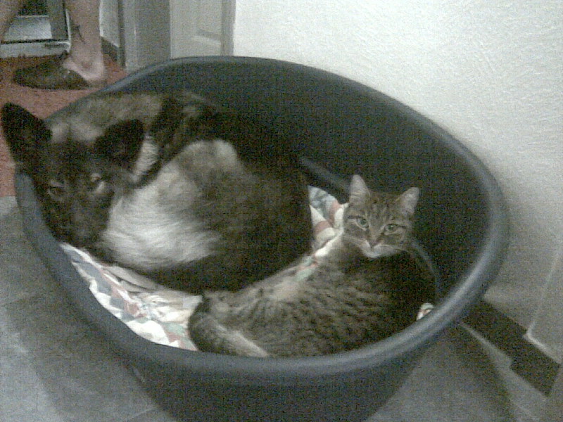 Doch meine Kyra (Katze) schüchter Jenny total ein. Jenny ist ängstlich, lässt sich von ihr total einschüchtern, wert sich null. Also Kyra geht jetzt net auf sie los aber sie faucht guckt ihr in die Augen, rennt ihr hinter her. Da Jenny bereits 13 Jahre ist, braucht sie viel Ruhe mitlerweile. tja und jetzt schläft sie bei meinem Dad auf dem Bett und meine Kyra ist auch ruhig tappselt halt ein wenig rum.