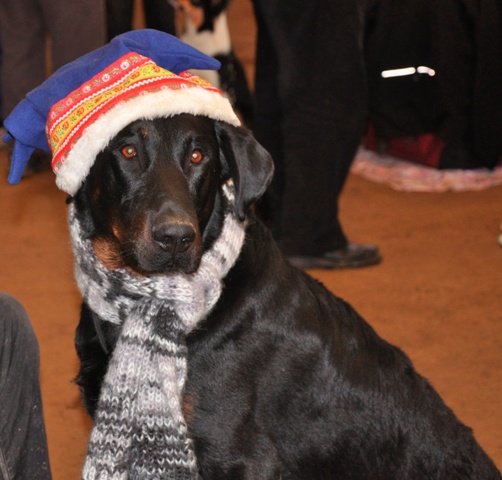 Hier mal unser Rüde Eyco auf einem Agility Turnier im kalten kalten Winter. Lolchen PS: Uebrigends das ist eine echte Tibetanische Mütze..