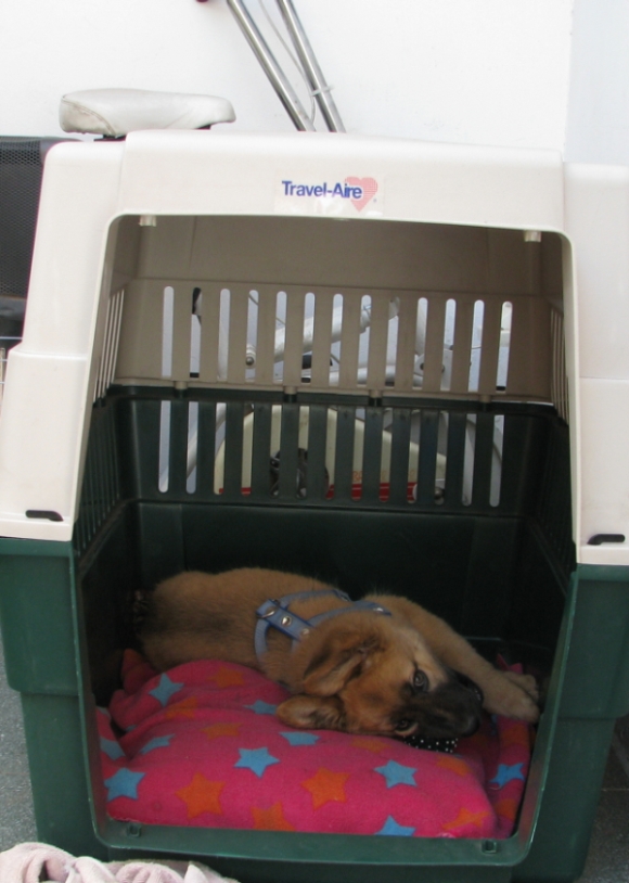 Ihre Aufgabe hier ist momentan die Welt erkunden. Im Auto fährt sie schon ziemlich cool mit: Nach ein paar Minuten aus dem Fenster schauen legt sie sich in meinen Schoß und schläft. Bus gefahren ist sie nun auch schon mehrmals. Tauben und Pferde mag sie auch. Nur Artgenossen zu treffen ist hier etwas schwierig. In Berlin werde ich aber natürlich mit ihr in eine Welpenspielgruppe gehen. Eigentlich weniger wegen der Erziehung, das traue ich mir schon zu, mehr zur Sozialisierung. Und sicher kann auch ich da noch eine Menge lernen.