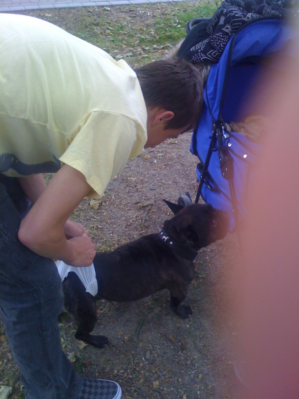 Das sieht ja schon sehr knuffig aus im Kinderwagen...´ne echt süsse Fratze ! Weiterhin gute Besserung! Was mir da gerade einfällt....woher ist Mayloo? Der kommt nicht zufällig vom Reitz aus Cronenberg?? Grüßchen, Chrissi & Lennox