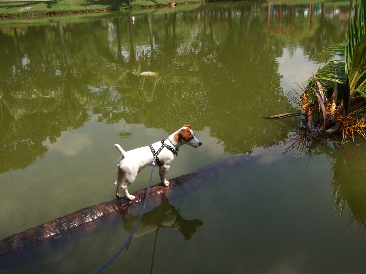 naja unser Toby ist gesund und munter und war heute ganz wagemutig.... das erste mal in seinem Leben an einem Teich... weiter als bis zum Bauch isser nicht rein.... aber ueber eine umgestuerzte Palme isser balanciert ohne ins Wasser zu fallen...