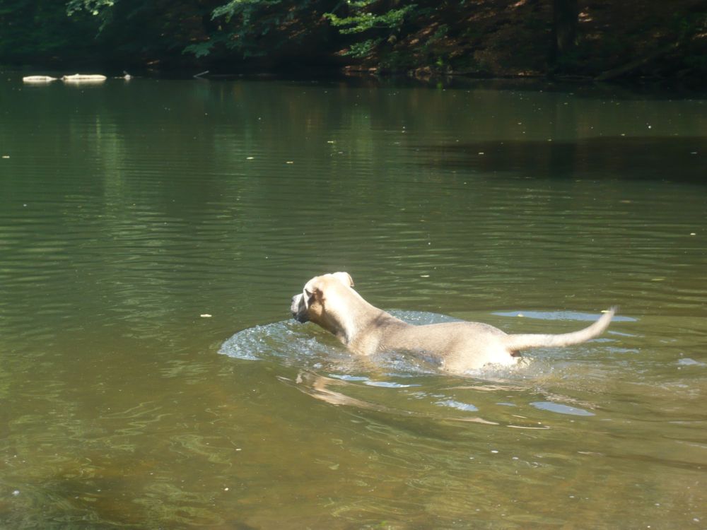 Lennox und ich haben dort heute unseren Nachmittag verbracht. Es war total schön und Lennox hat endlich einen geeigneten Pool für sich gefunden, ohne Papageien und rutschigen Fliesen