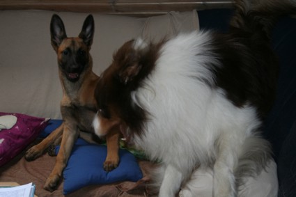Carry ist diese Woche ab Mittwoch "zur Probe" dort um zu sehen ob sich die Hunde vertragen und ob der Vater meiner Freundin mit Carry zurecht kommt. Denn einfach ist die Kleine nicht. ;)