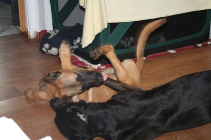 Ja, jetzt spielen sie schon miteinander. Die ersten paar Tage haben die Großen Carry ignoriert.