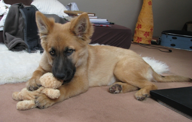 Ich bin wieder dahaaaaaa  Norwegen und Schweden haben mir sehr gefallen, insbesondere Stockholm. Mensch, Kiara ist so groß geworden. Irre, wie schnell das in 10 Tagen geht. Und ihren ersten beiden Milchzähne hat sie inzwischen auch verloren. Wie vorhergesagt, hat sich einiger Mist eingeschlichen wie z.B. Buddeln im Garten..., aber das wird schon wieder. Kiara ist nun fast stubenrein, es werden immer weniger Pipirunden und sie meldet sich eigentlich immer, wenn es ganz dringend wird. Im Moment schaut es so aus, als werde sie doch nicht ganz Schäferhundgröße erreichen. So langsam kommt sie in die Pubertät, denn immer öfter bringt sie ihren eigenen Dickschädel zum Vorschein. Bilder gibt es bald, wenn ich ein wenig mehr Zeit fürs Internet habe.