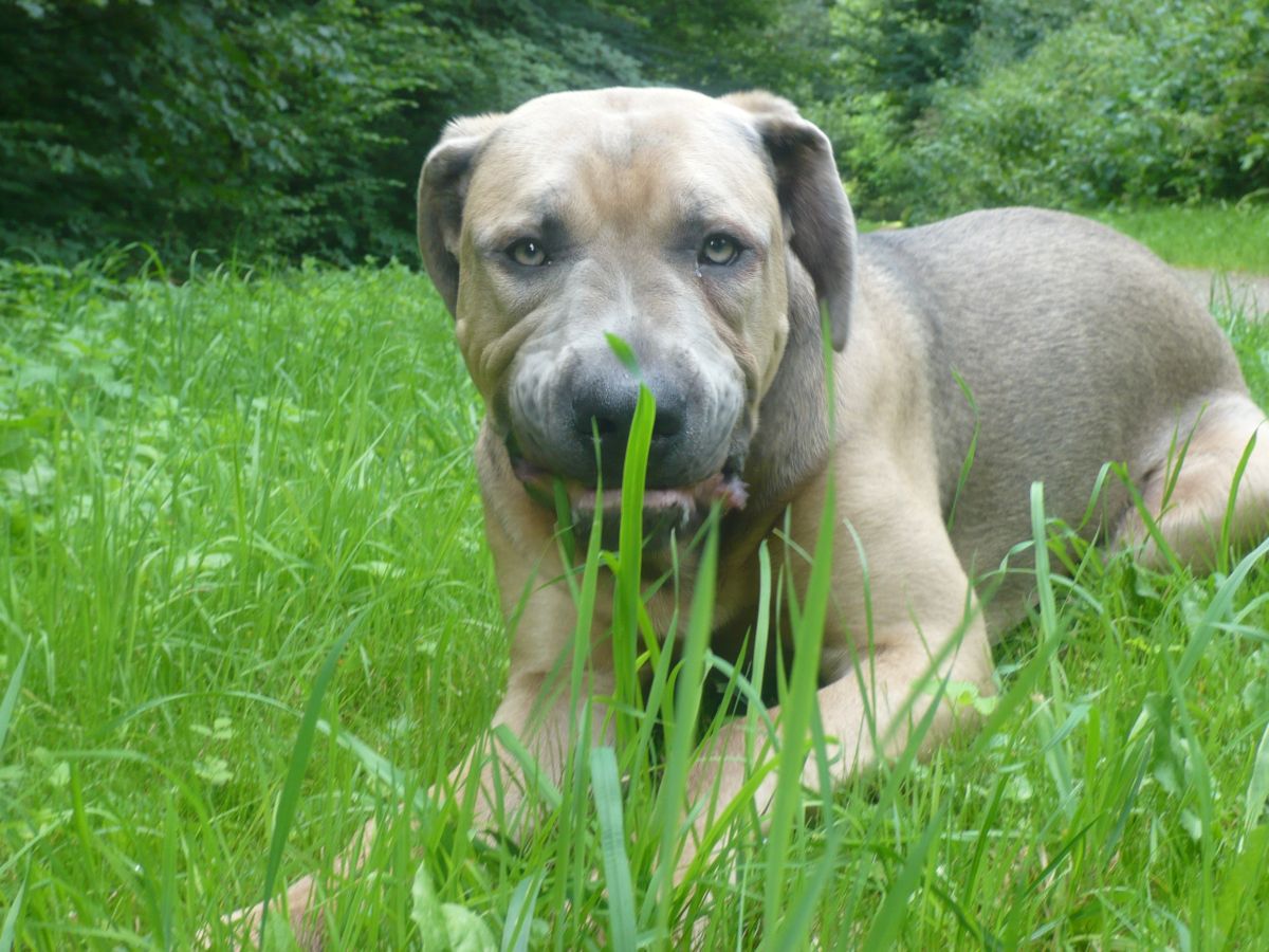 Da haben wir Glück. Zu Lennox Freundeskreis gehören ein paar Labradore, ein Boxer und eine andere Antikdogge. Mit den Kleinen geht er ganz behutsam um, die Leute sind immer sehr gerührt wie er das macht. Meistens legt er sich hin und die Zwerge klettern auf ihm Habe aber auch von Anfang an darauf geachtet, dass er nicht mit vollem Körpereinsatz auf nen Yorkshire losgeht, das könnte unter Umständen schlecht ausgehen.