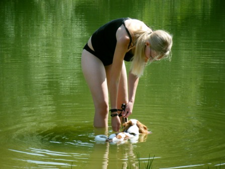 mit so einem kleinen hund muss man nichtmal weit rein hihi habe ich festgestellt als ich mit dem hund meiner freundin plötzlich viel tiefer musste ins kalte nass...