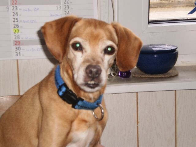 Hi dyck Kessy ist ca 35 cm hoch, eigentlich ist sie nie viel gewachsen, hat sich nur im Aussehen verändert. Weisse Schnauze, usw . Also klein, praktisch, passt in jede Tasche.