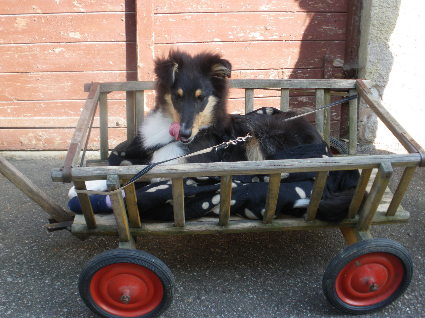 Also glaube auch Jacko, geht es im Bollerwagen recht gut. 8-) Er sieht doch recht zufrieden aus. :P