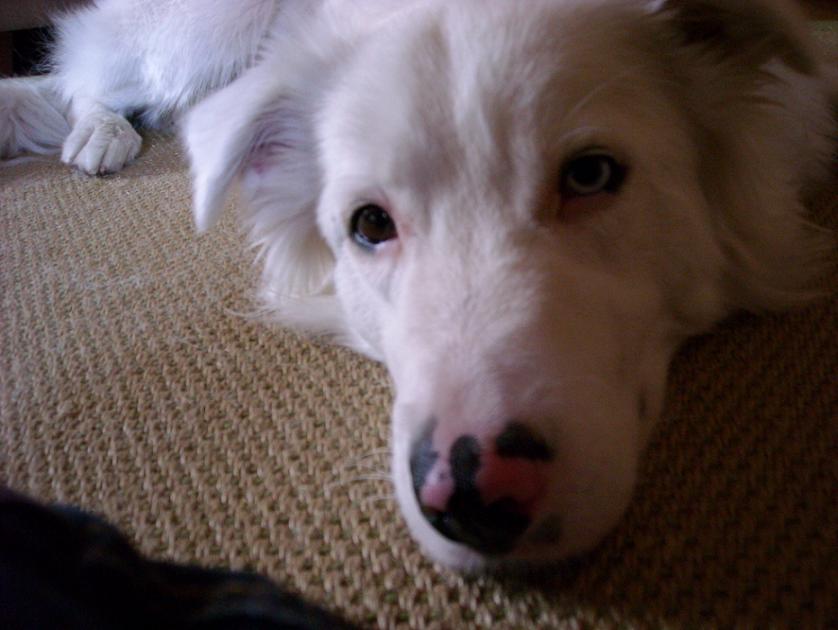 Haha, ja das schimmelige hat der noch. Ein Border - Australian Shepherd Mix, mit absoluter Fehlfarbe. Aber was solls. Ist ja nicht zum Züchten und zuchttauglich aussehen, sondern zum kümmern und liiieb haben. Obwohl ich dazu sagen muss, ich bin schon etliche Male gefragt worden, ob ich den denn nicht zum Decken mal hergeben würde. Hab aber immer abgeleht. 1. finde ich, laufen genug Mischlinge und andere knuddelige Welpen, ohne zu Hause rum 2. ist der einzigartig und soll es auch bleiben und 3. weiß ich selber gar nicht mal, ob er sonst überhaupt alle Bestimmungen erfüllen würde. Aber ist mir auch egal. Er ist mittlerweile eh kastriert.
