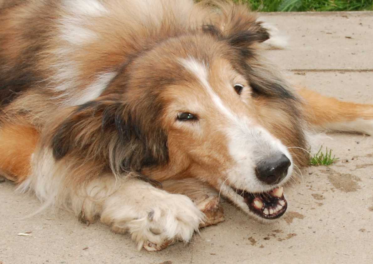 ein Foto von ihrer Lieblingsbeschäftigung, der sie nach Empfehlung unserer Tierärzte eigentlich längst nicht mehr nachkommen sollte: Knochen fressen. Die Zähne sind noch alle da und funktionieren so wie immer. Für ihr Verdauungssystem ist es nicht ungefährlich, wohl wahr. Aber soll ich ihr dieses Vergnügen deshalb vorenthalten?