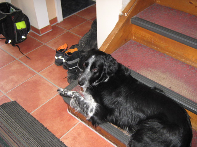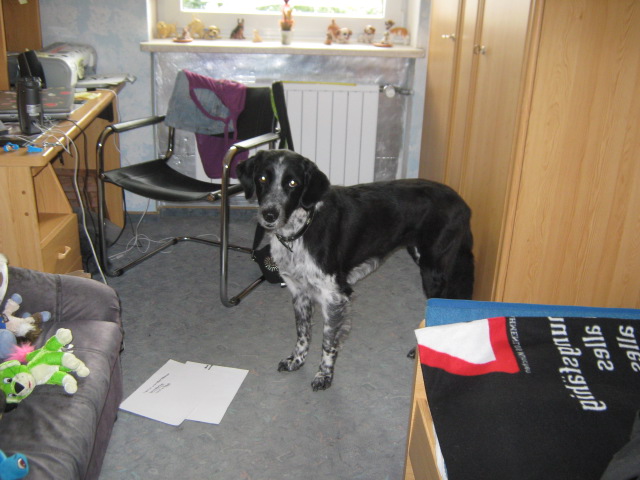 Hast ne hübsche Dame. :) Erinnert mich stark an meinen früheren Pflegehund. War auch ne Münster-Mix-Hündin, allerdings kleiner und mehr schwarz. :)