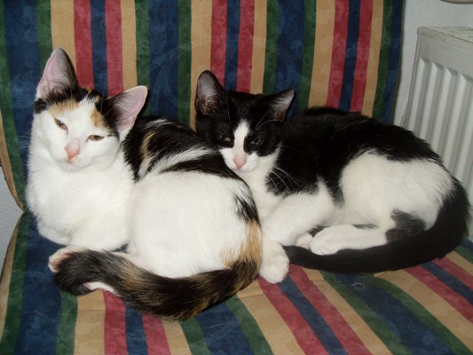 Aber unsere zwei Lieblinge können auch anders. Mara ist oft recht itschig zu Tessa, obwohl sie nichts macht. Nehme an Eifersucht. Meistens lässt das Tessa das auch kalt. Sie hat sowieso ein ruhiges Gemüht. Doch Mara hat schon versucht Tessa rauszufordern. Die Rangfolge war dann eigentlich klar. Tessa oben, Mara unten (Tessa ist auch 10 kg schwerer), doch manchmal vergisst Mara nur zu gerne, wer von ihnen beiden die Chefin ist…. :roll: . Aber die beiden süßen Mäuse sind nicht immer zusammen, da mein Freund und ich noch zwei Wohnungen haben. (Wobei ich hoffe, dass sich das in ca. einem Jahr ändert... :mrgreen: )