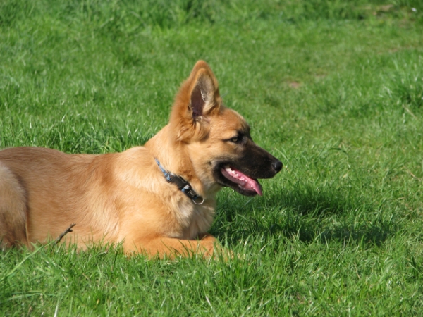 Inzwischen frisst sie auch mehr. Morgens und abends bekommt sie ihr Futter wie gewohnt im Napf. Und mittags/nachmittags darf sie ihr Futter im Garten selbst suchen. Das macht ihr einen riesigen Spaß. Wie eine Alte kann ich sie ablegen oder ins Sitz schicken - inzwischen auch schon auf mehrere Meter Entfernung -, das Futter verstecken - mit oder ohne Sichtkontakt -, zu ihr zurückgehen und sie suchen schicken. Meist dauert es nicht lange, da mampft sie schon.