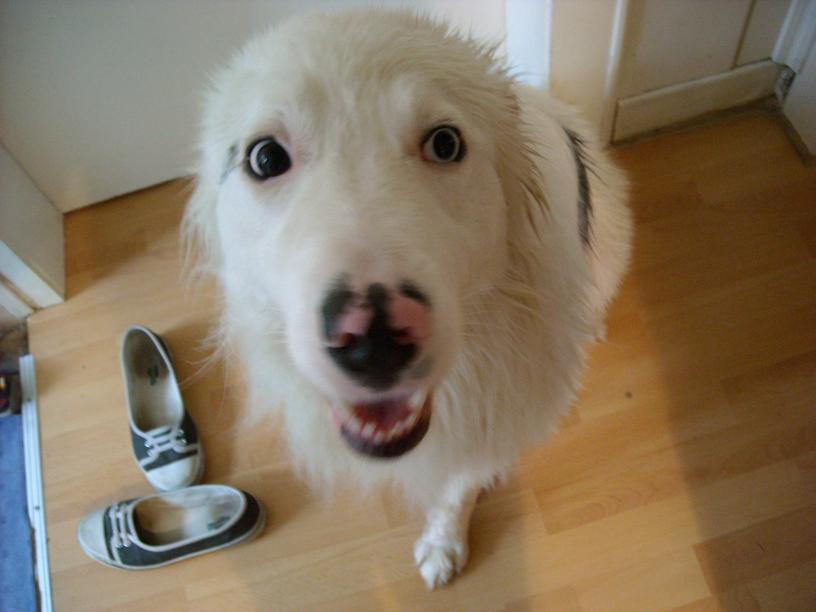 :roll: also mal ehrlich, ich seh da keinen dreck :? dreck sieht mal wirklich anders aus :shock: das ist ein schnee-weisses hündchen, das unheimlich nett von unten nach oben in die kamera guckt :) wo ist da bitte rot und braun und ascheplatz????? ich werd morgen mal schwarze feld-füsse fotografieren und dann komm mir nicht mehr mit asche-platz und deinem schneeflöckchen :mrgreen: