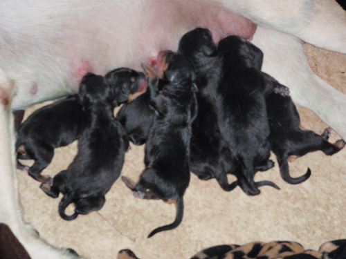 alle Welpen sind Gesund und Munter angekommen, ausser eines das ist leider tot zur Welt gekommen, da die Fruchblase mit dem kleinen verwachsen war, aber dem rest geht es super. Insgesamt sind es jetzt 11 bzw. 10 Stück geworden Hier schon mal die ersten Bilder, weitere folgen wenn sie alle richtig trocken sind. Viele Grüße