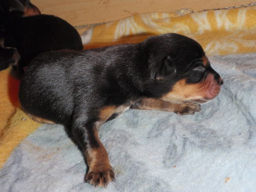 es ist wieder mal an der Zeit, eich auf den Laufenden zu halten Das mit den Zufüttern haben wir bereits eingestellt, da die kleinen lieber an der Mutter saugen als an der Flasche... Ich passe jetzt lediglich auf das die kleineren auch genug Milch abbekommen wie die etwas größeren. Das funktioniert auch so weit alles super Aber eine etwas schlechtere Nachricht habe ich dennoch... Ein kleines ist am Freitag gestorben, da es leider eine Gaumenspalte hatte Ich finde es nur immer wieder sooo Süß wie die kleinen schon die Gegend nach Milch abschnuffel und wie sie sich an die Mutter "heranrobben" Die Mutter hat ihre Rolle als Mami wirklich toll angenommen und ist von 24 Stunden am Tag 22 Stunden für die kleinen da. Die anderen 2 Stunden gehen wir gassi oder Sie legt sich mal kurz ausserhalb des Welpengeheges hin. Anbei wieder ein paar aktuelle Bilder Viele Grüße
