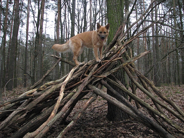 In Schnee kann Kiara nur reinbeißen, da packt sie die Leidenschaft Wir hatten heute vielleicht einen abwechslungsreichen Ausflug in den Wald... Es fing schon auf dem Hinweg an: Um zum Wald zu kommen, muss ich an einem Supermarkt vorbei, vor dem öfter mal Hunde angeleint sind - oder auch nicht angeleint. So einen Kollegen, Senfhund, Größe Corgi sah ich also ein paar Meter vor mir, dachte mir aber noch nichts bei und bin mit Kiara am Fahrrad flott vorbeigefahren, bevor der uns gesehen hatte. Der kleine Kerl, ganz Jockelchen, hat Kiaras Hitze aber ganz schnell gerochen und nahm die Verfolgung auf. Quietsch in die Bremsen, ich bin erstmal abgestiegen, hab mich vor Kiara gestellt und nach einem Besitzer Ausschau gehalten. Pustekuchen, keiner zu sehen! Also habe ich dem kleinen Kerl erst sanft versucht klar zu machen, dass er von meiner Schnecke diese Nase lassen soll. Das leuchtete ihm nicht so ganz ein - ist vielleicht ein Hund mit Migrationshintergrund. Alle körpersprachlichen Drohungen verstand er nicht, dann bin ich eine Stufe weitergegangen: Wasser. Ich hatte meine Plastikwasserflasche dabei, aus der er dann eine ordentliche Ladung abbekommen hat. Das beeindruckte ihn ein klein wenig, aber überzeugte noch nicht endgültig. So Leid es mir auch tat, habe ich dann beherzt die Flasche nach ihm geworfen, worauf er dann davondackelte. Der hätte uns sonst bis in den Wald verfolgt, da bin ich mir sicher. Erst waren wir am Wildgehege bei den Hirschen und Wildschafen und dann wurde gespielt. Kiara und ich haben heute weiter Ball stupsen geübt. Da hatte ich extra heute Vormittag noch einen Ball aus dem Kinderwarenladen gekauft... und mal wieder Kiaras Zähne unterschätzt, von denen sich einer sofort *pffffffffffft* in den Ball bohrte. Aber danach wurde ihr zunehmend klarer: Reinbeißen = doof, schubsen = gut Seht selbst: