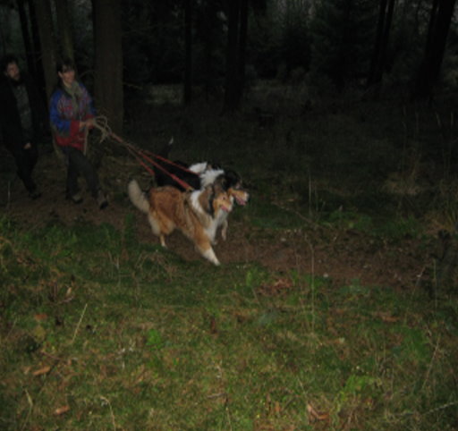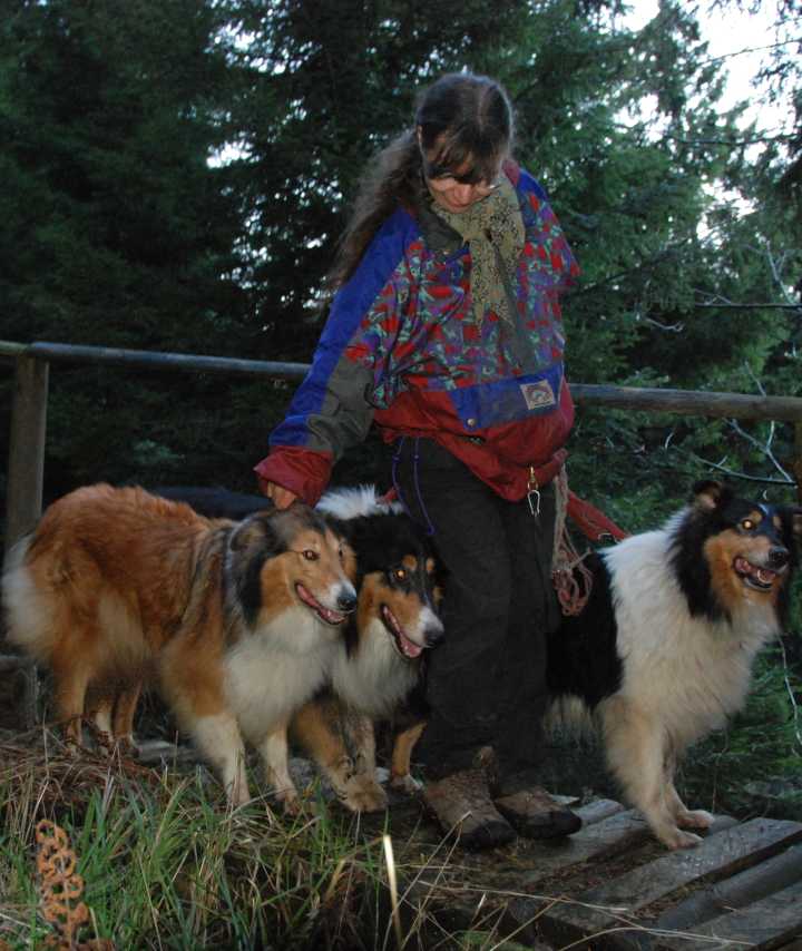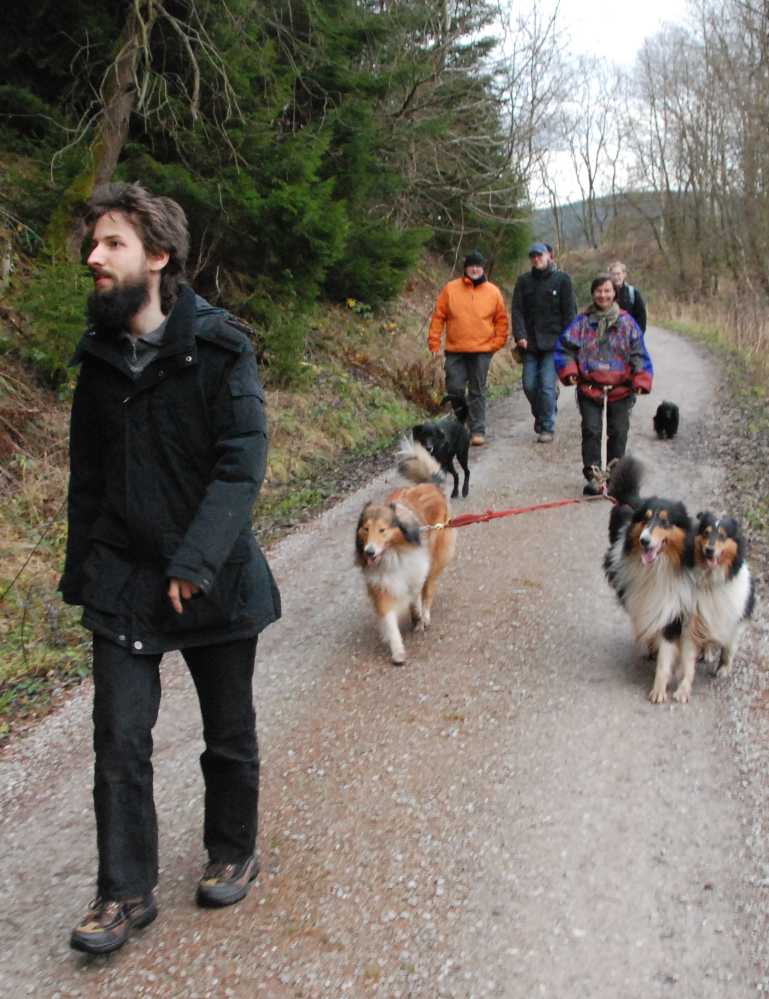 Ich hab mit Babsi und ihrem Freund Thomas ihren Dackel Max und meine Collies Drago, Chandra und Ballota jeweils zwei schöne kleine Suchübungen im Hundewald machen lassen. Dann sind wir alle gemeinsam den Blaubeerweg hinunter gewandert. Sammy und seine Frauchen waren auch dabei. Ebenso mein Sohn Pierre und mein Thomas, der nicht auf den Fotos vorkommt, weil er die ganze Zeit die Knipse hatte.