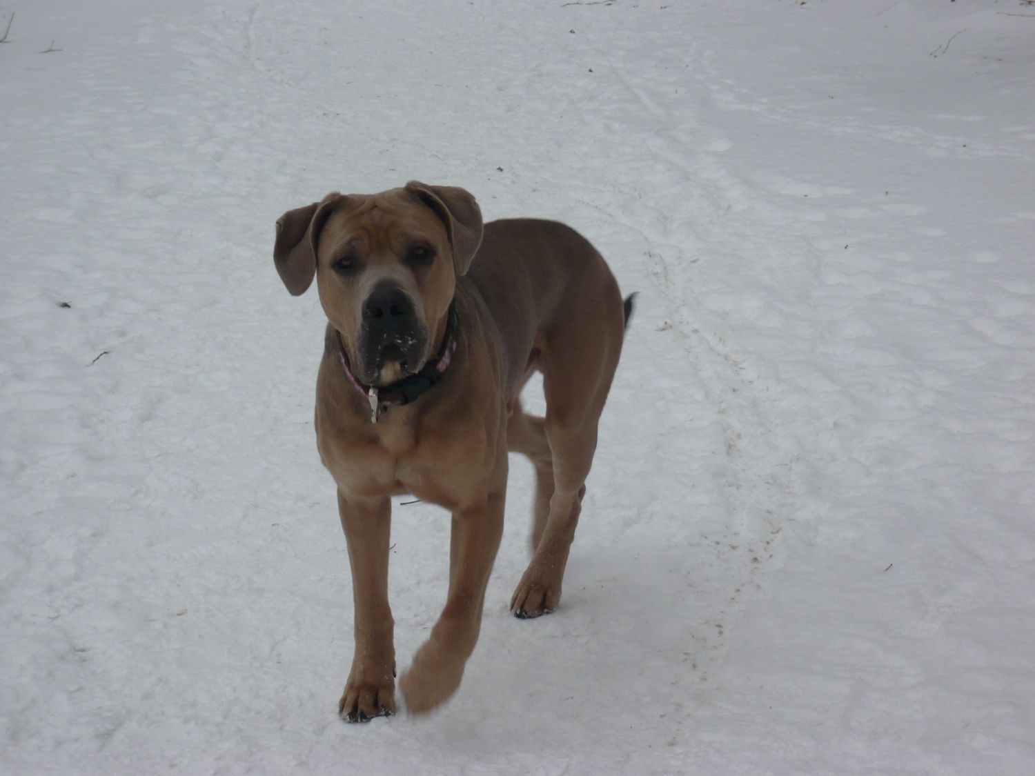 Noch führe ich ihn und ich hoffe, dass es so bleibt Wenn er schon mal unverhofft in die Leine geht, ist es nicht sehr angenehm...hält sich aber im Rahmen, Gott sei Dank