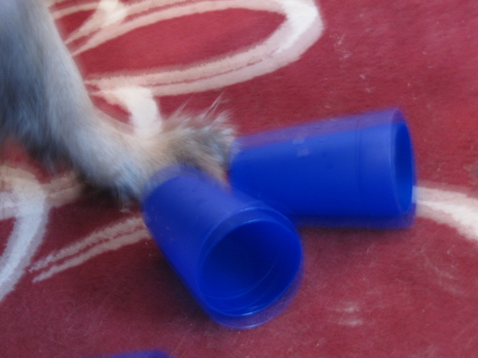 Ich kann mich jedes Mal wieder kaputtlachen, wenn Lieselotte das "Hütchenspiel" mit mir spielt.(Sie will einfach nicht glauben, dass Frauchen so ein fieser Mopp ist und tatsächlich nur unter einem Becher ein Leckerchen versteckt)