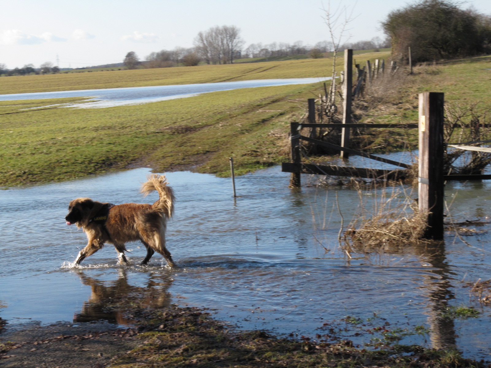 Bei uns stehen die Wiesen wegen des Weser-Hochwassers unter Wasser.